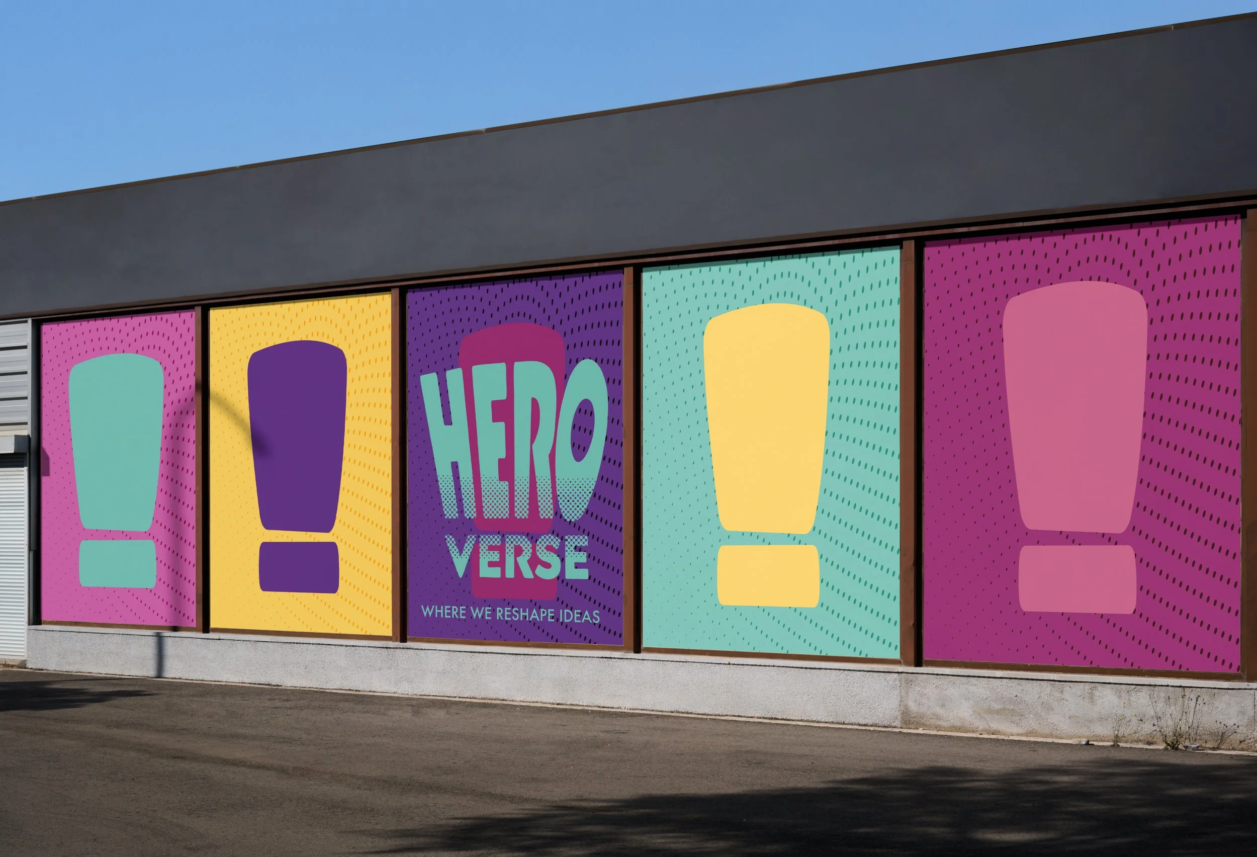 The exclamation mark functions as the primary symbol of the brand. It merges two things at the heart of HEROVERSE: Comic onomatopoeia, the punchy language of action and expression. The event’s purpose, which is to uplift voices, shout representation into the world, and call attention to new narratives. The exclamation mark becomes a visual device used throughout signage, merchandise, passes, and digital touchpoints. It acts as an anchor that ties together the energy of comic culture with the empowerment goals of the expo.